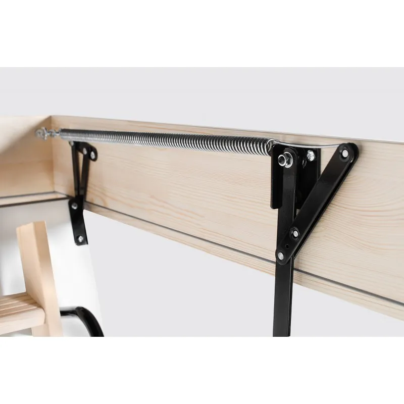 Складная 3-х секционная чердачная лестница. Рабочая поверхность полностью выполнена из алюминия. Термоизоляционная крышка типа "сэндвич" имеет усиленную теплозащиту, облицована с двух сторон ДВП белого цвета.