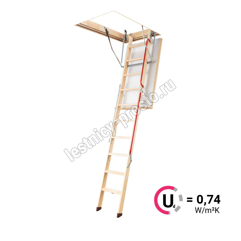Складная чердачная лестница LWL имеет повышенные теплоизоляционные параметры и высокий класс герметичности. Утеплённая крышка люка белого цвета. Лестница оборудована специальным механизмом LXM-3 и крючком на нижней ступени марша для стержня, которые в комплексе обеспечивают лёгкость и плавность открывания и закрывания лестницы. Снабжена дополнительным поручнем для безопасного подъёма.