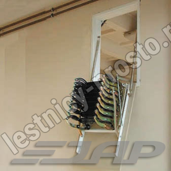 На ступенях антискользящие насечки. Люк выполнен из ДСП древесного цвета. Металлический стержень для открывания лестницы в комплекте.