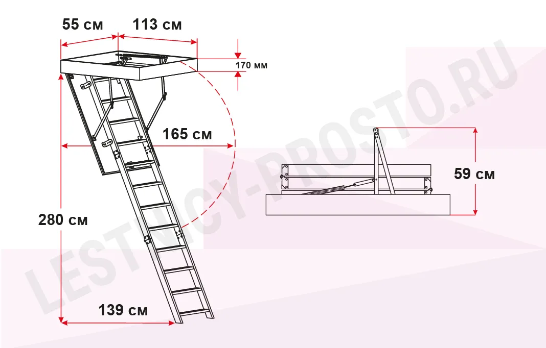 Чердачная лестница OMAN POLAR 55×113 см, h-280 см