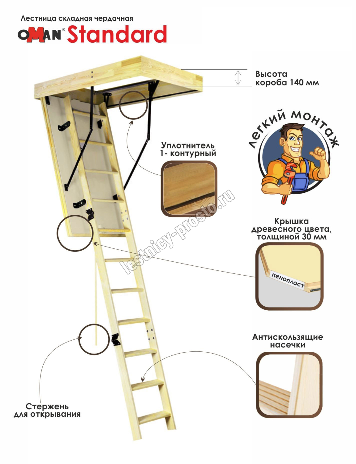 Чердачная лестница OMAN STANDARD 60×120 см, h-280 см
