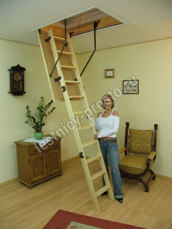 Складная 3-х секционная чердачная лестница из массива сосны.