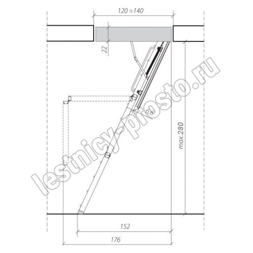 Соединение тетивы боковых элементов и ступеней лестницы в крепление «ласточкин хвост» гарантирует надежность и прочность конструкции. Ступени не соприкасаются с крышкой лестницы, а противоскользящие выемки обеспечивают комфорт и безопасность использования. Монтажный комплект LXK приобретается отдельно.