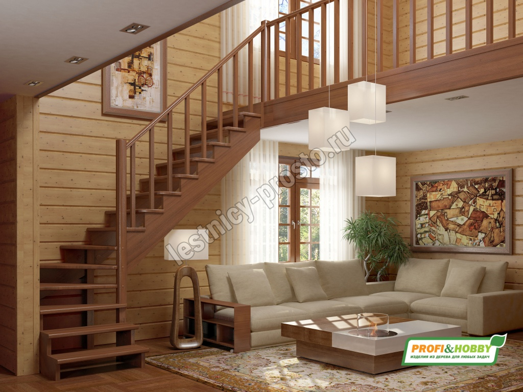| Лестница из сосны К-001М/2 под покраску с подступёнками |