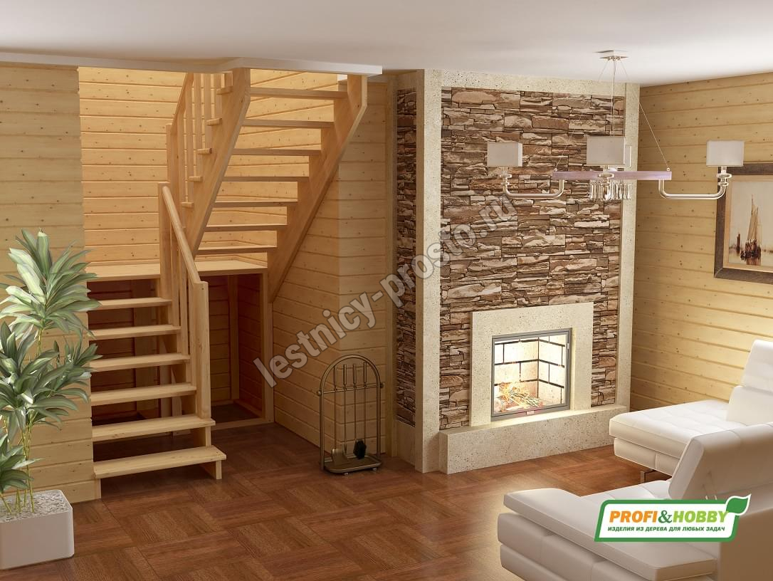 | Лестница из сосны К-004М/2 с подступёнками под покраску |
