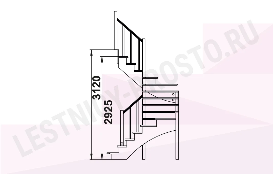 Высота лестницы 2925 - 3120 мм