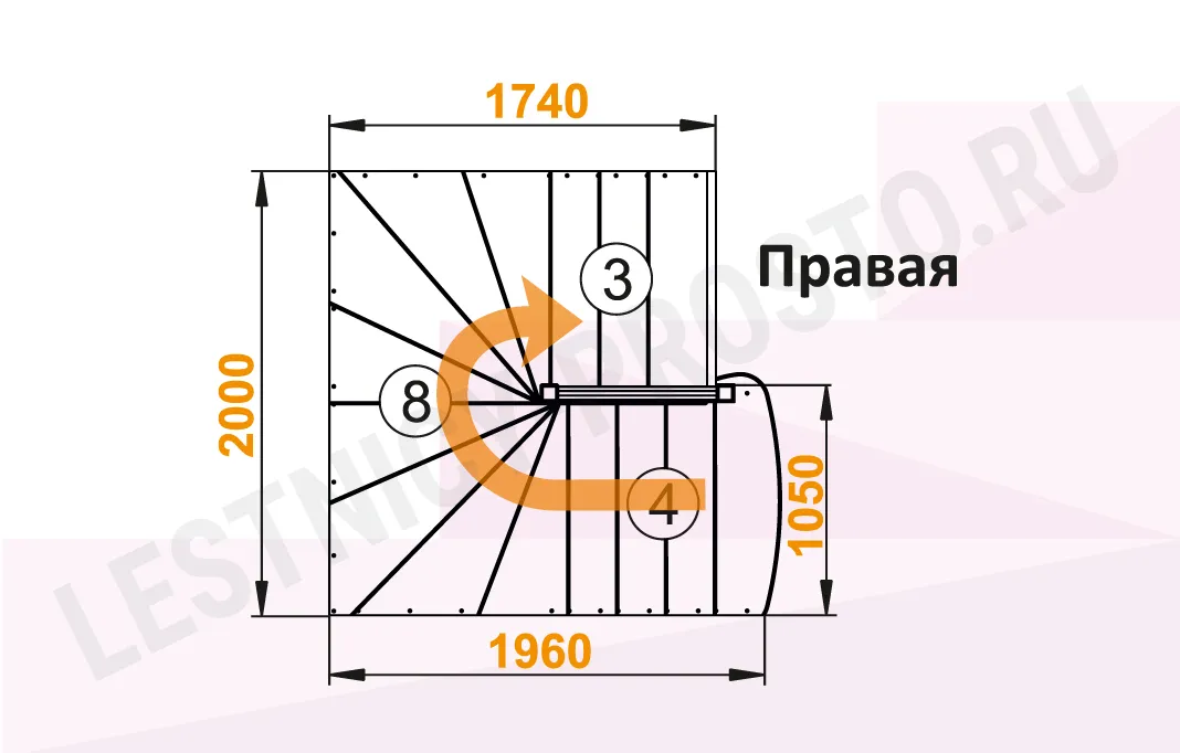 Схема лестницы К-103М с поворотом направо