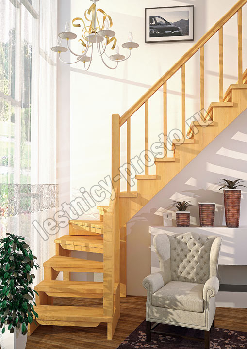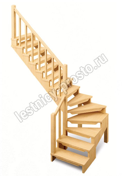 Деревянная межэтажная лестница ЛЕС-09 2690 проем 2405-900, Лиственница