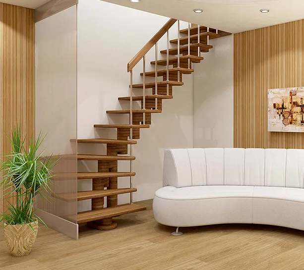 Базовый комплект включает в себя деревянные элементы лестницы и ограждения без какого-либо покрытия. Стильная сверхмалогабаритная лесенка, она выручит в таких помещениях, где установка других лестниц проблематична из-за нехватки пространства.