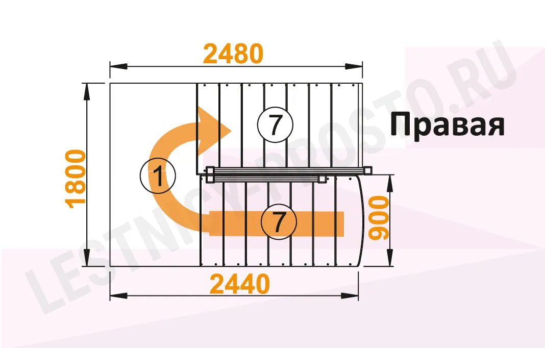 Схема лестницы К-004М/1 с поворотом направо