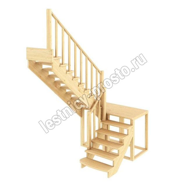 Материал: бук (ступени и поручень), сосна (косоуры, столбы, балясины)