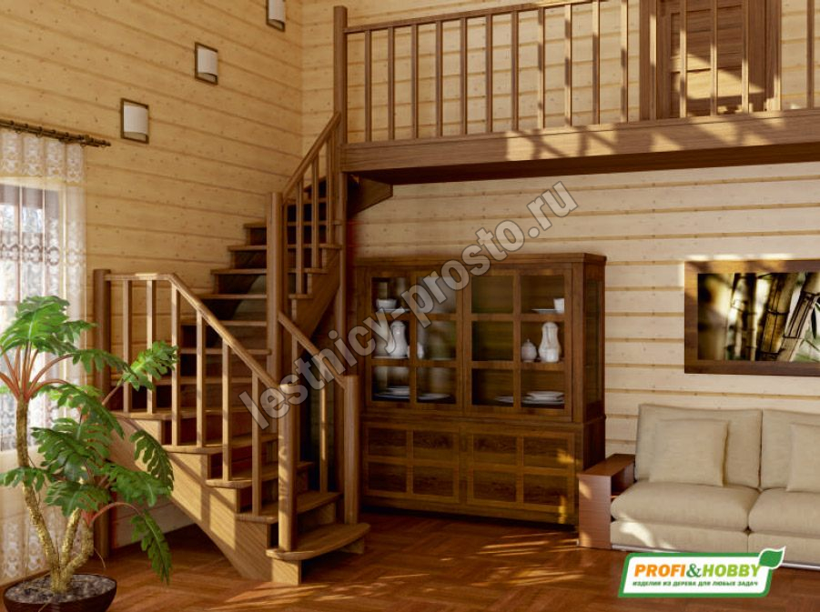 Ступени и поручень лестницы выполнены из бука, остальные элементы из сосны.