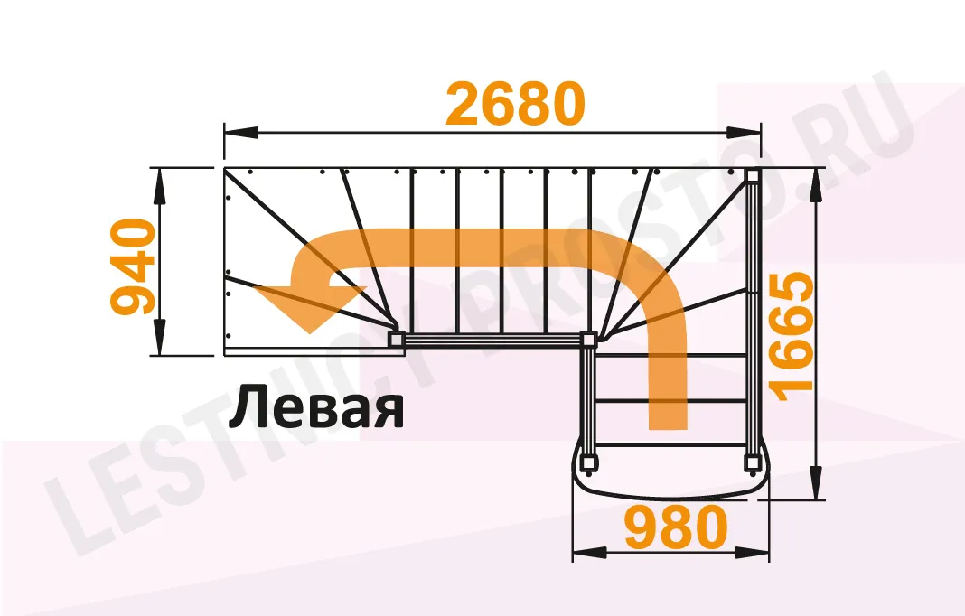 Схема лестницы К-009М с поворотом налево