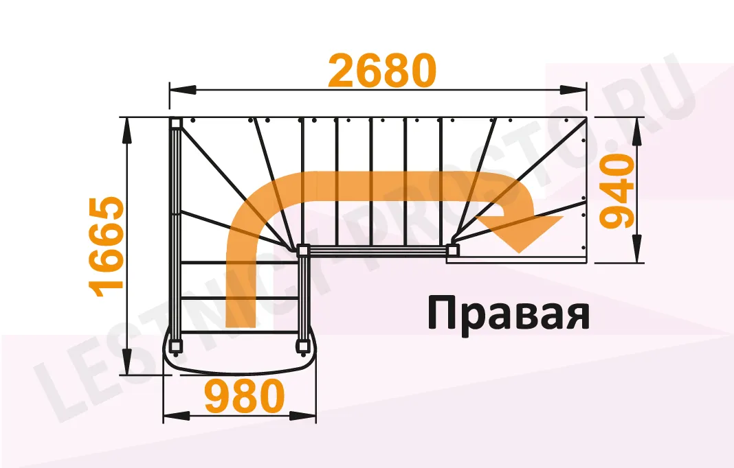 Схема лестницы К-009М с поворотом направо