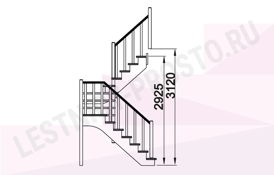 Ограждение у лестницы с обеих сторон (снизу до поворотной площадки)