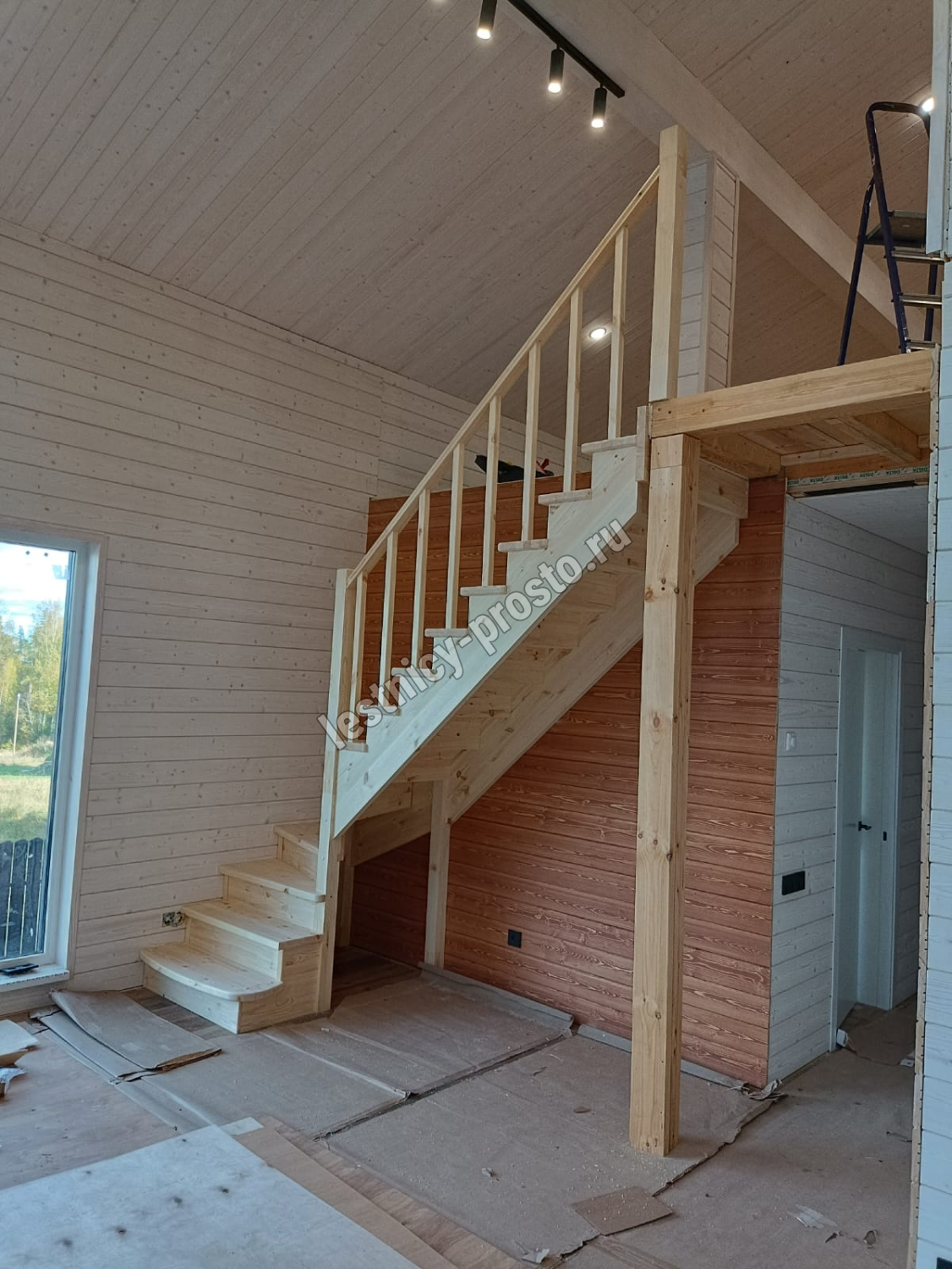 Лестница из сосны К-001м/1 под покраску с подступёнками