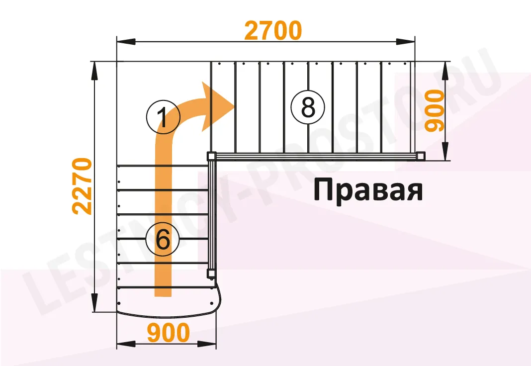 Базовый комплект включает в себя деревянные элементы лестницы с подступёнками и ограждения без какого-либо покрытия.