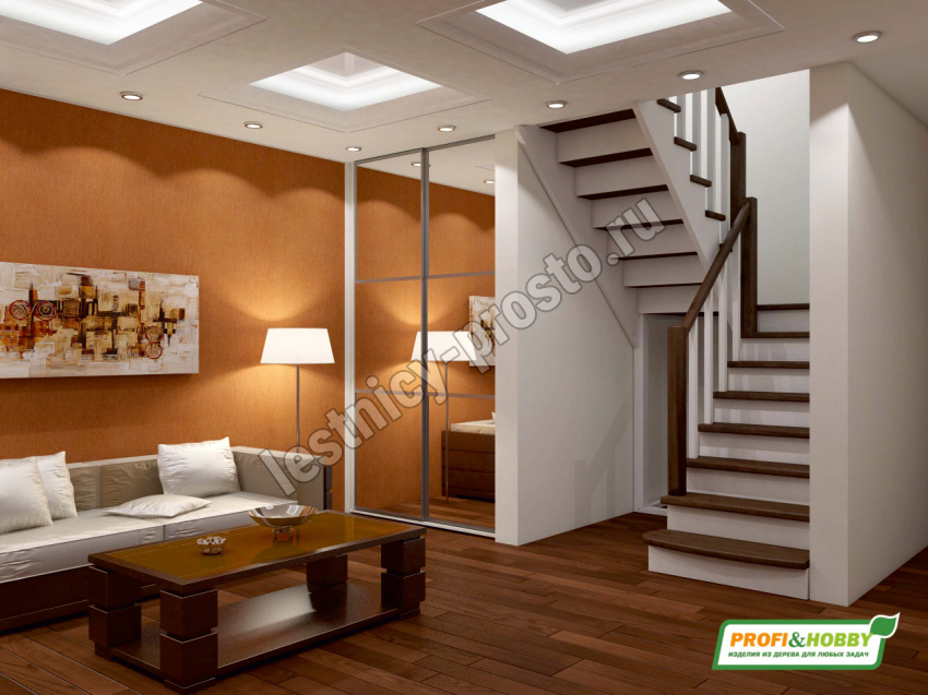 Базовый комплект включает в себя деревянные элементы лестницы и ограждения без какого-либо покрытия. Вы можете заказать у нас покраску лестницы в цвета, отвечающие особенностям вашего помещения.