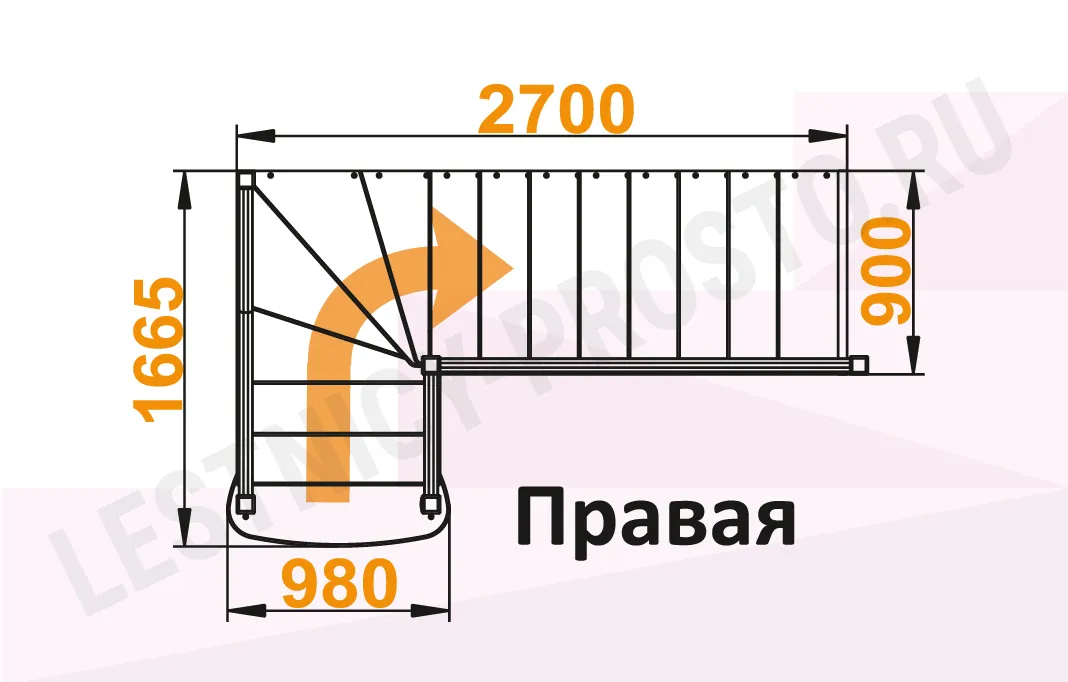 Схема лестницы К-021М с повротом направо