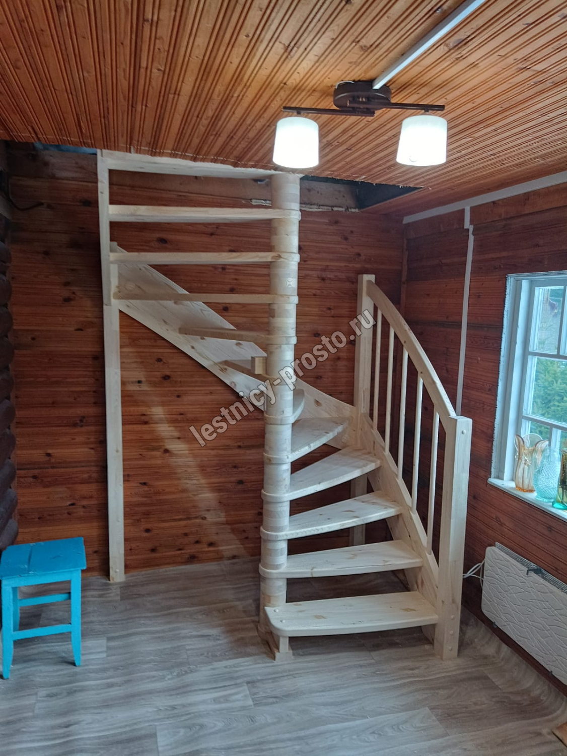 Базовый комплект включает в себя деревянные элементы лестницы и ограждения без какого-либо покрытия.