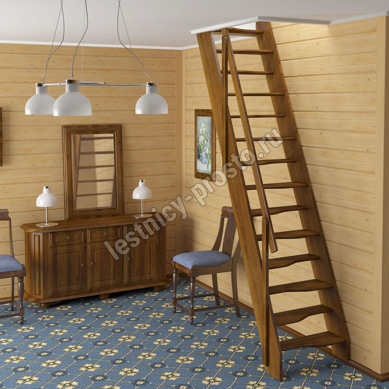 Базовый комплект включает в себя деревянные элементы лестницы и ограждения без какого-либо покрытия.
