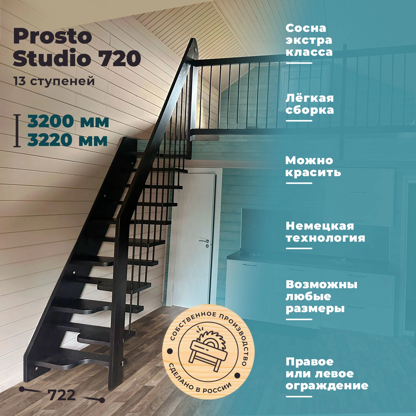 Данная лестница изготавливается под заказ в течении 4-5 недель. Возможно изготовление этой модели с другими размерами, подходящими под параметры вашего помещения. Базовое ограждение можно заменить на кованое или точеное. Ступени можно дополнить подступенями, бортиками, миниподступенями. Возможна установка лекальной (пригласительной) ступени. Стоимость указана без покраски/лакировки.