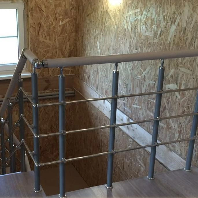 Ограждение для прямой лестницы PROSTO DUE/DOUBLE с крашеными стойками и струнами