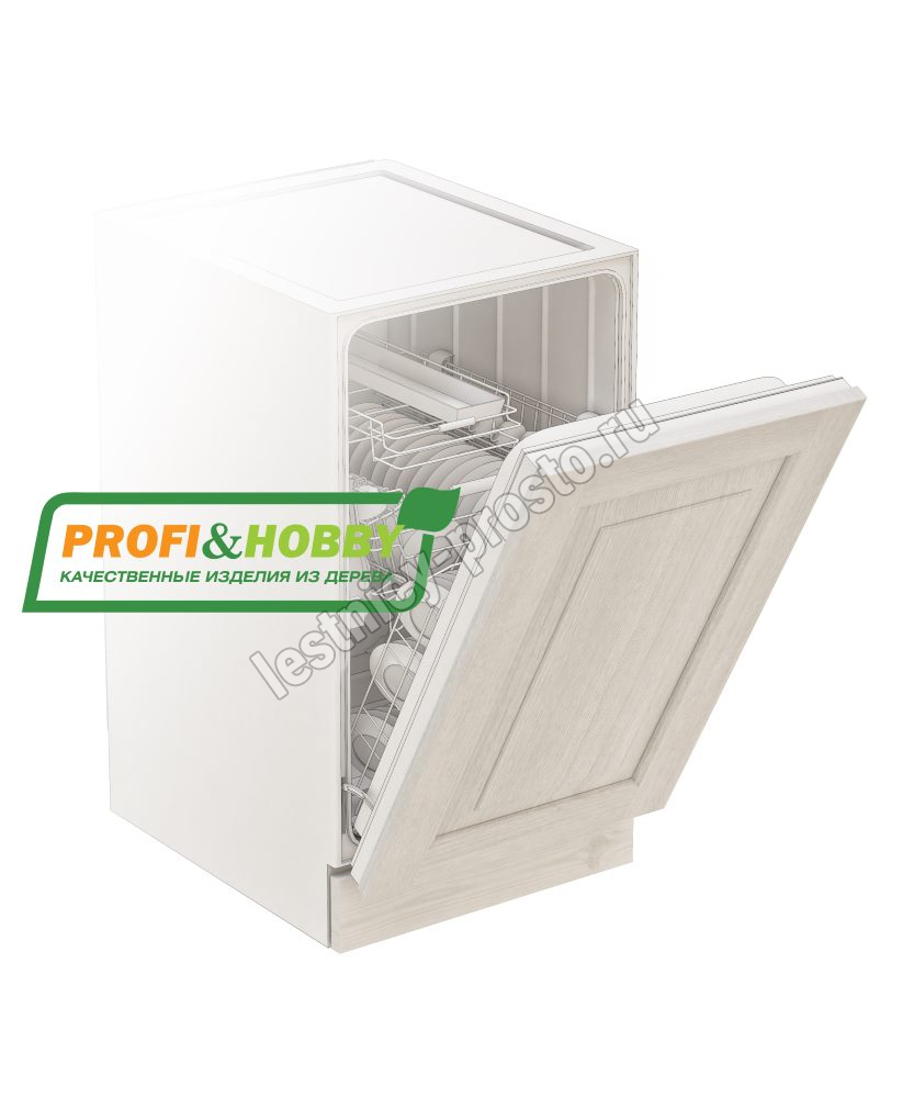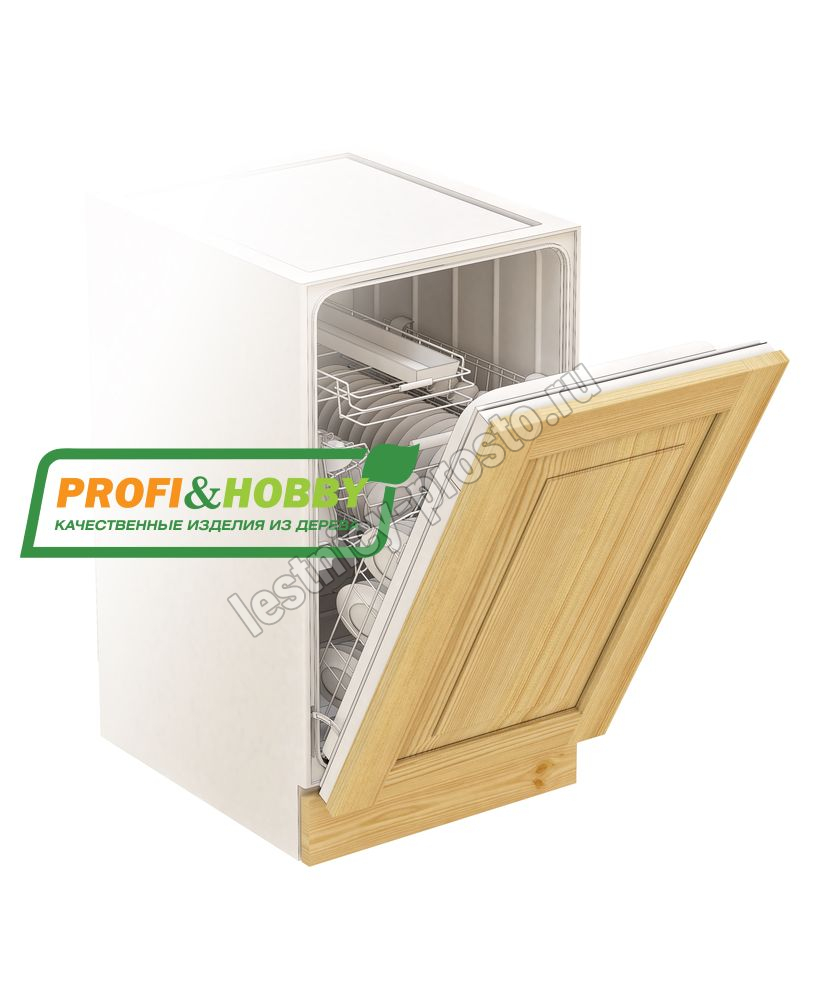 Фасад для посудомоечной машины изготовлен из 100% массива дерева, без шпона и без МДФ/ДСП.