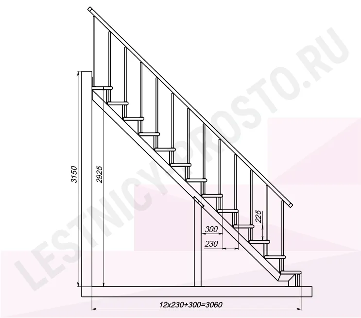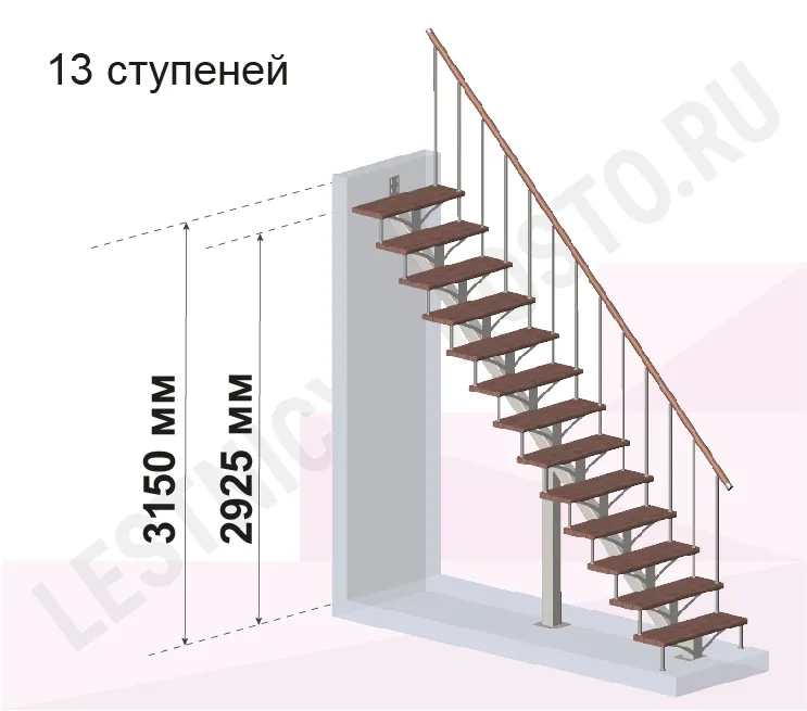 Лестница PROSTO MONO прямая, h315 см, ступени лиственница