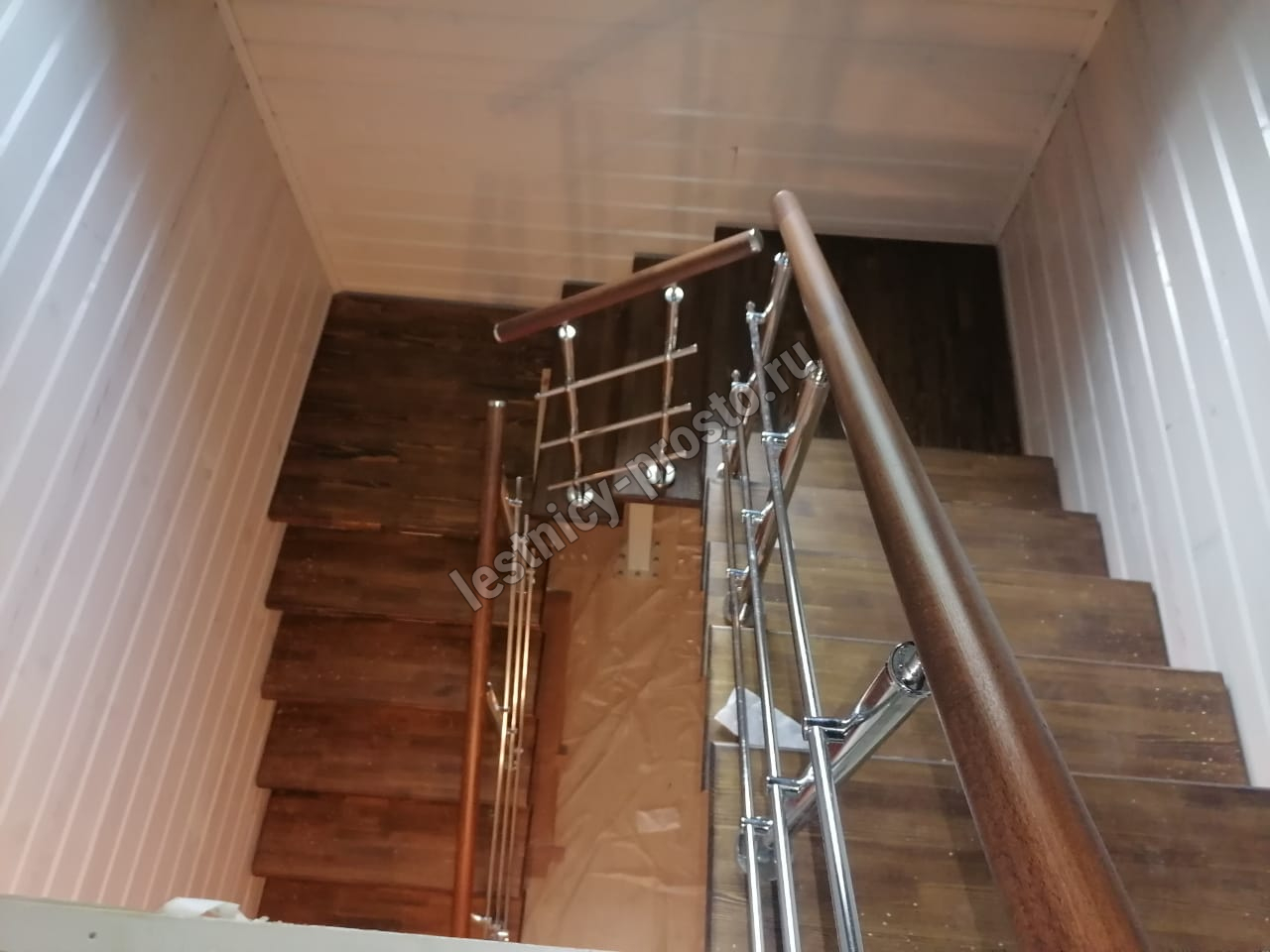 Лестница PROSTO MONO STEP CLASSIC п-образная забежная, ступени из лиственницы, с ограждением