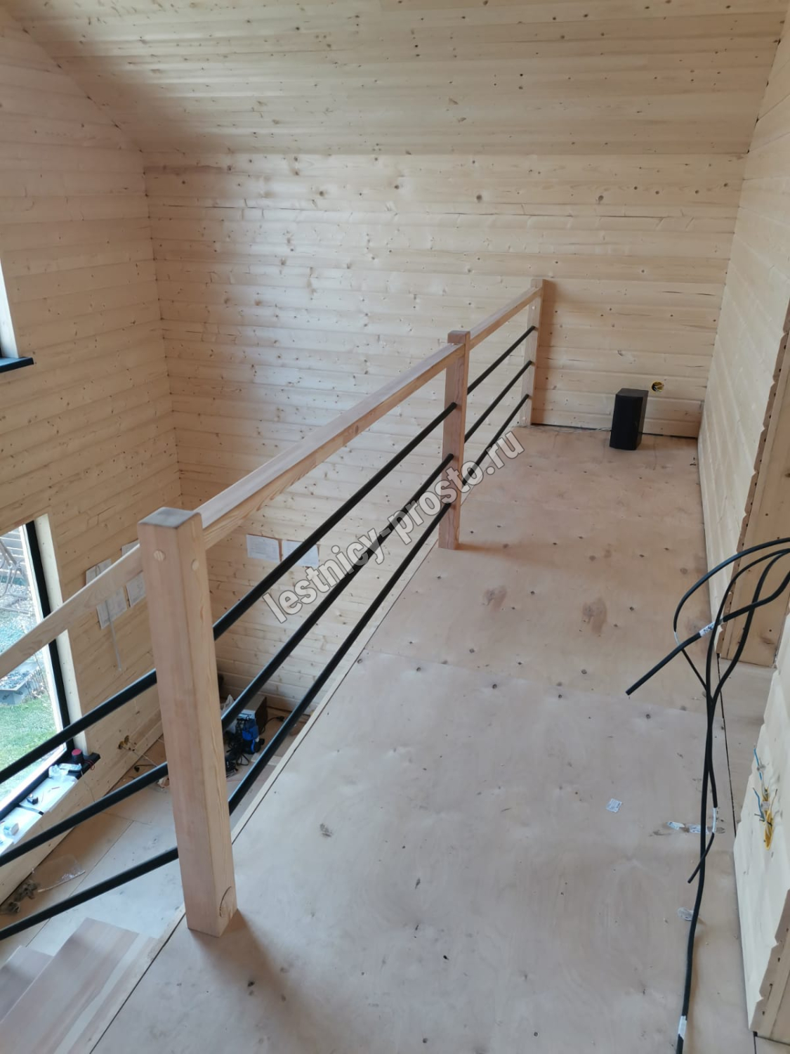 Лестница PROSTO MONO STEP TRINITY г-образная забежная, ступени лиственница с ограждением