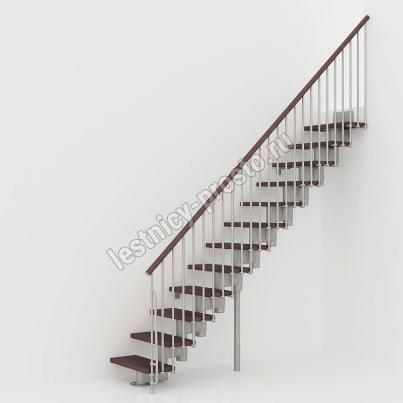 При монтаже этой лестницы, возможно регулировать высоту и глубину шага, таким образом можно получить лестницу под высоты этажа в диапазоне 2250 - 3030 мм, кроме того, установив дополнительный комплект увеличения высоты, можно поднять высоту лестницы до 3730 мм. Ширина проступи регулируется при монтаже в пределах 180 - 220 мм. Каркас и стойки ограждения выполнены из пластифицированного металла.