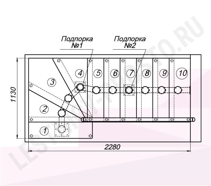 Высота лестницы 2250 - 2475 (10 ступеней) мм