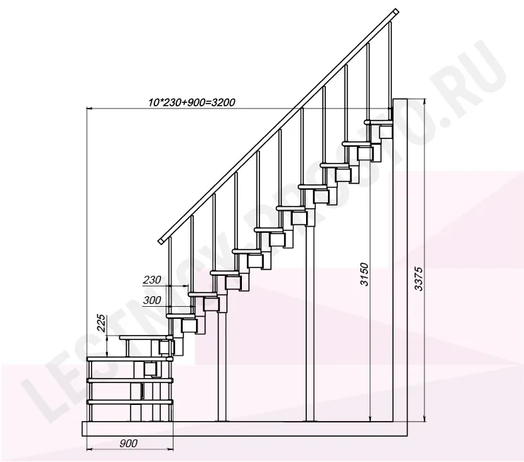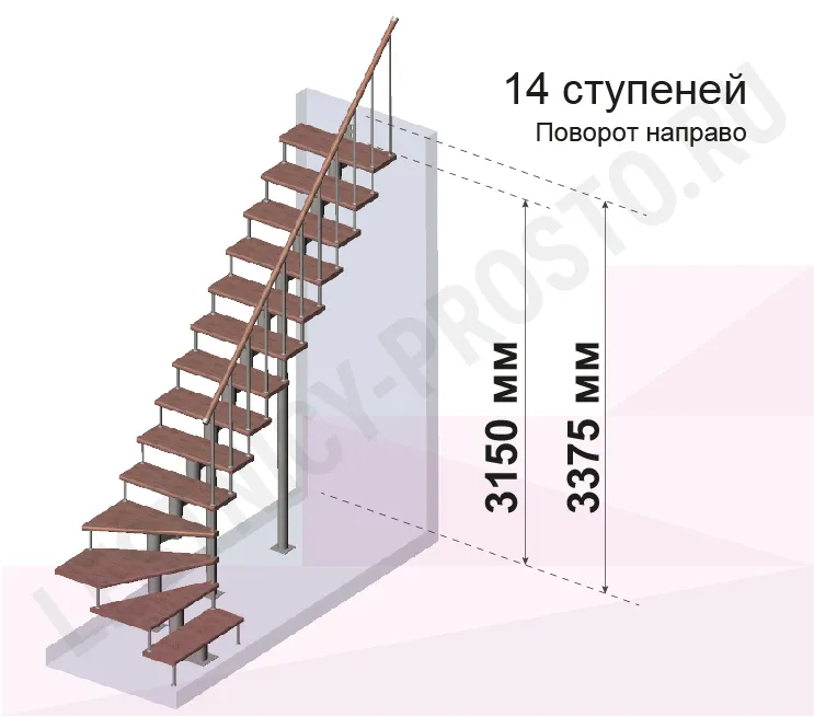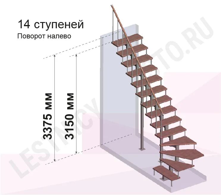 Высота лестницы 3150 - 3375 (14 ступеней) мм