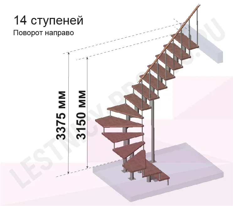 Высота лестницы 3150 - 3375 (14 ступеней) мм