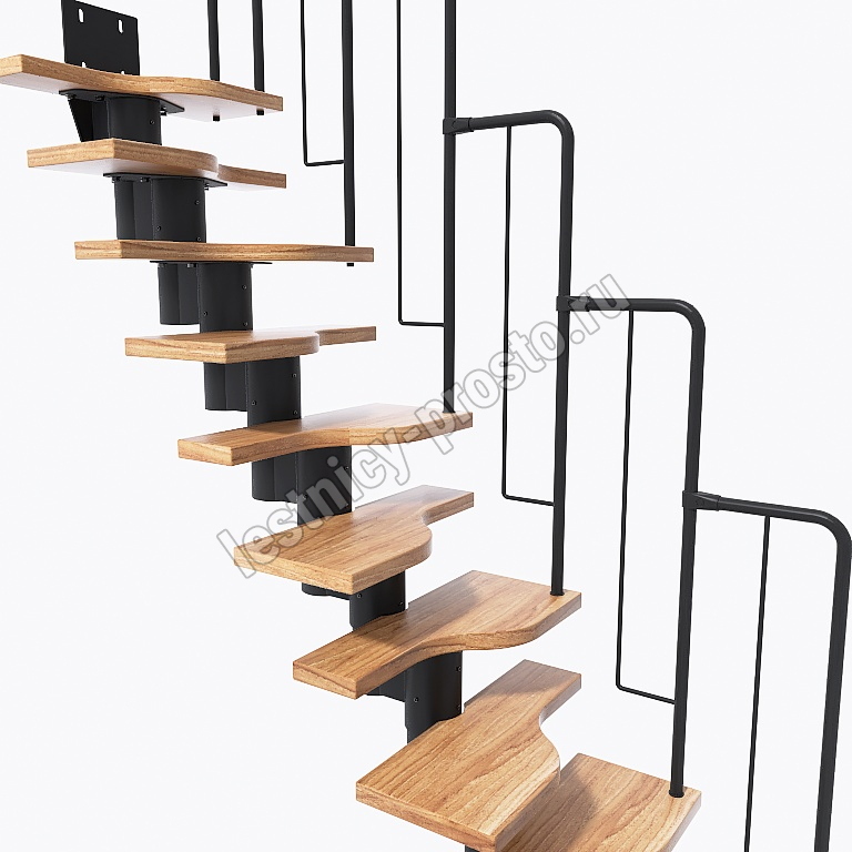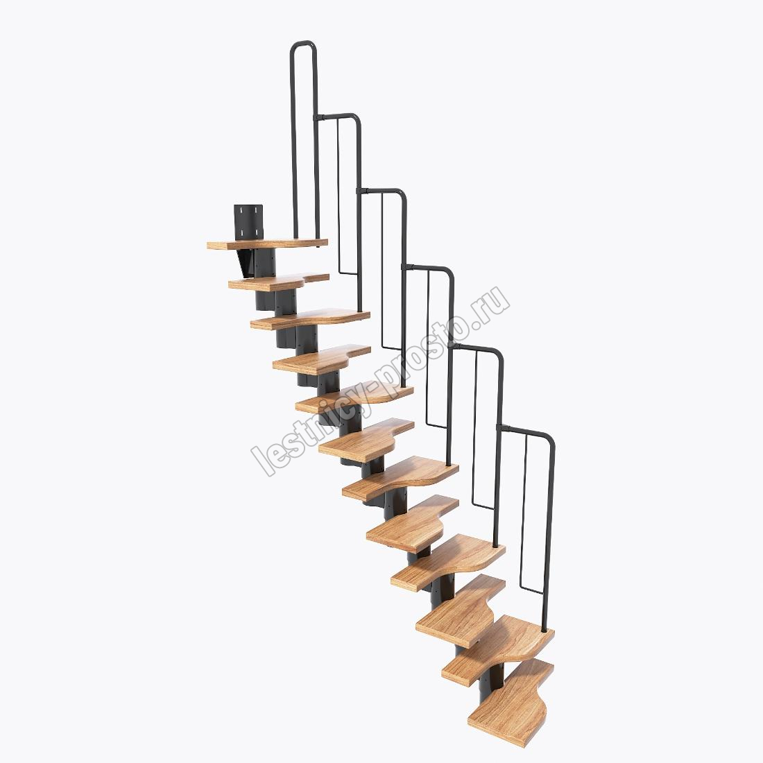 Лестница Prosto Urban Black гусиный шаг 700 мм, h198-288 см (11 ступеней), бук