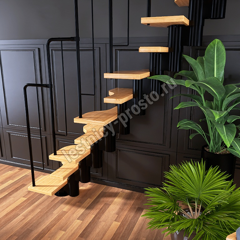 Лестница Prosto Urban Black гусиный шаг 700 мм, h216-312 см (12 ступеней), бук