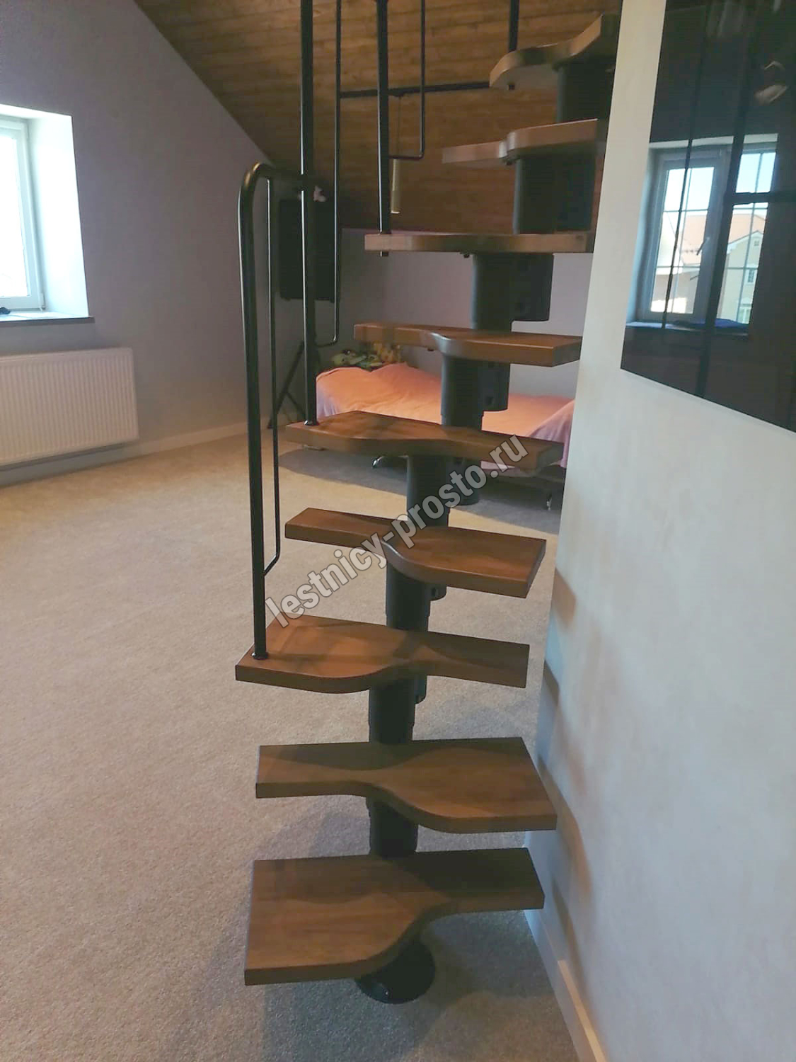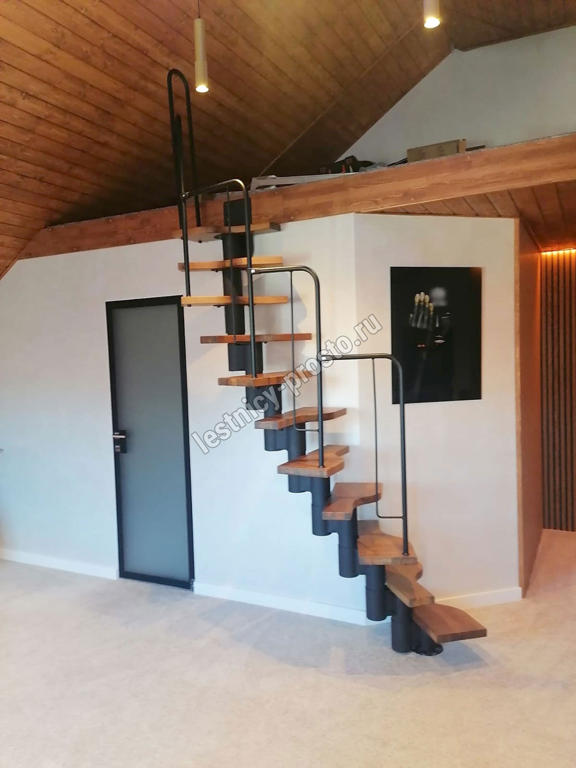 Лестница Prosto Urban Black гусиный шаг 700 мм, h216-312 см (12 ступеней), дуб