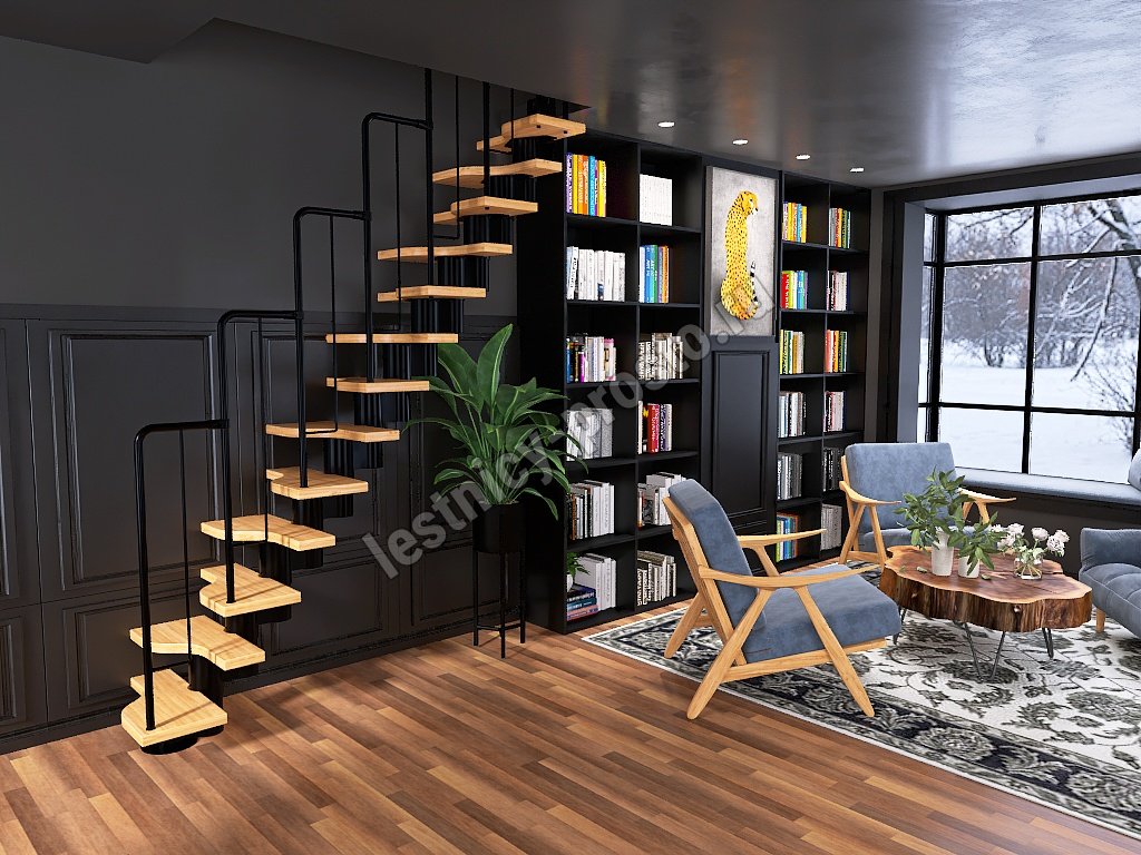 Лестница Prosto Urban Black гусиный шаг 700 мм, h234-336 см (13 ступеней), дуб
