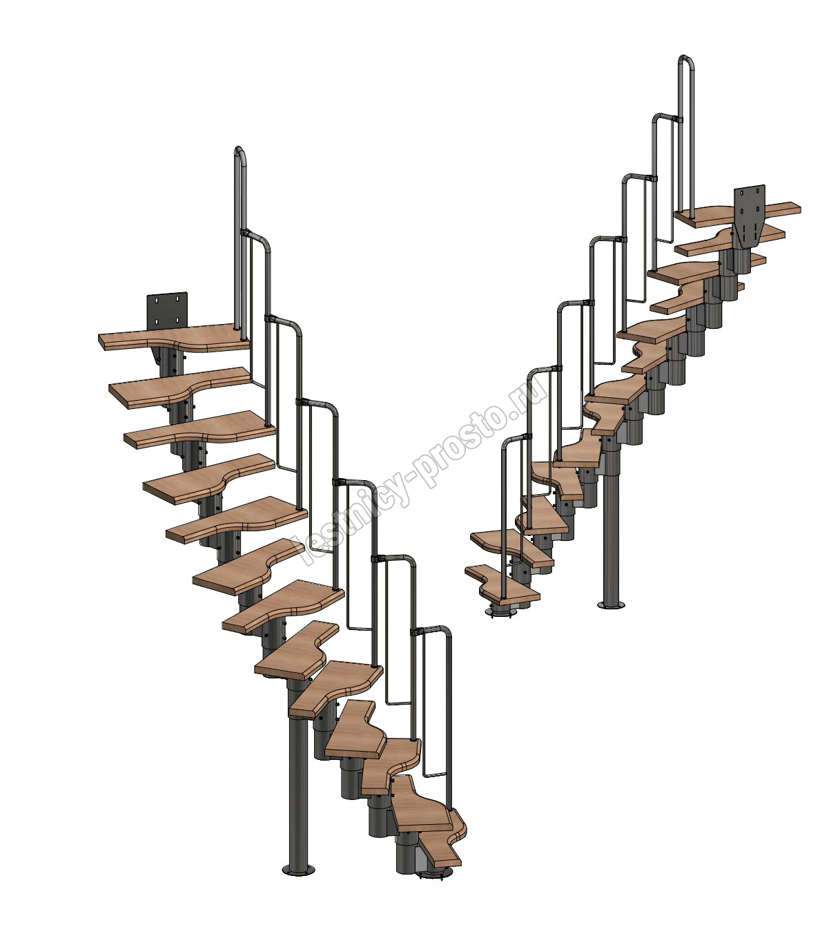 Лестница Prosto Urban Black гусиный шаг 700 мм, h234-336 см (13 ступеней), ясень