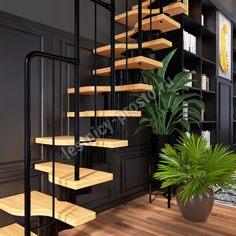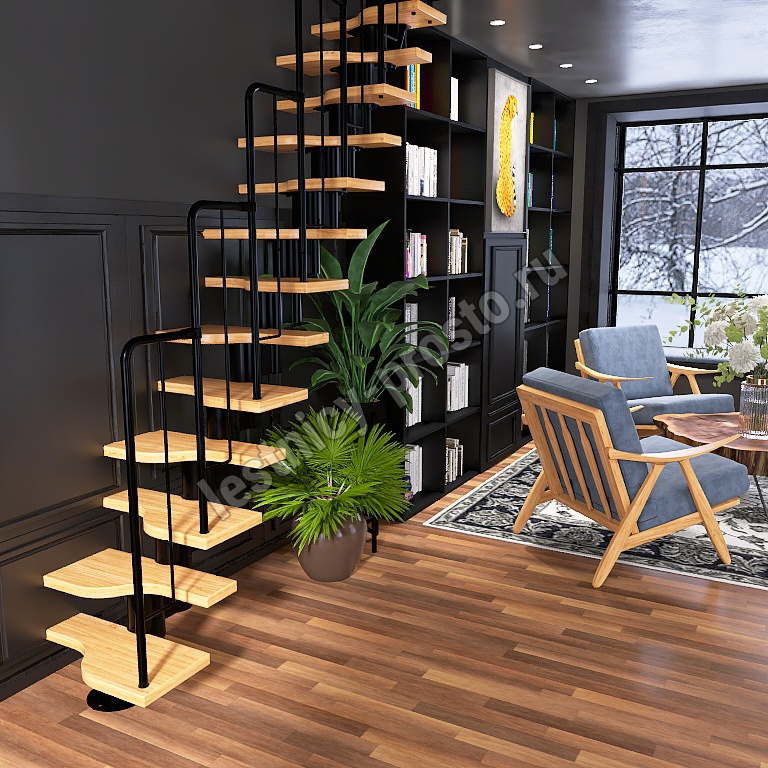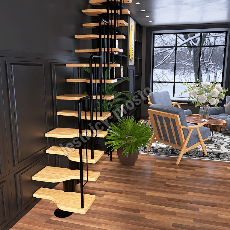 Лестница Prosto Urban Black гусиный шаг 700 мм/Ступени из срощенного дуба