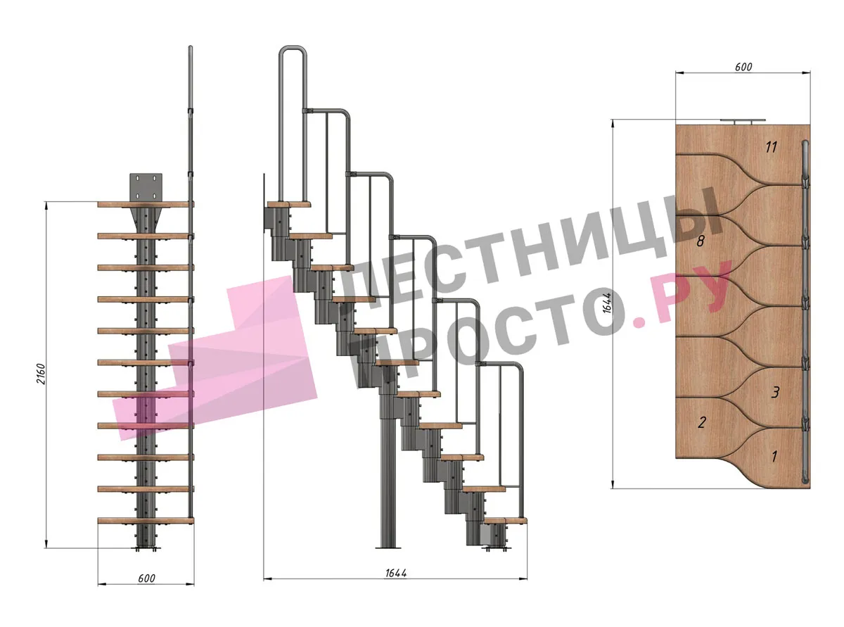 Лестница Prosto Urban Black гусиный шаг 600 мм/ Ступени из берёзы мультиплекс