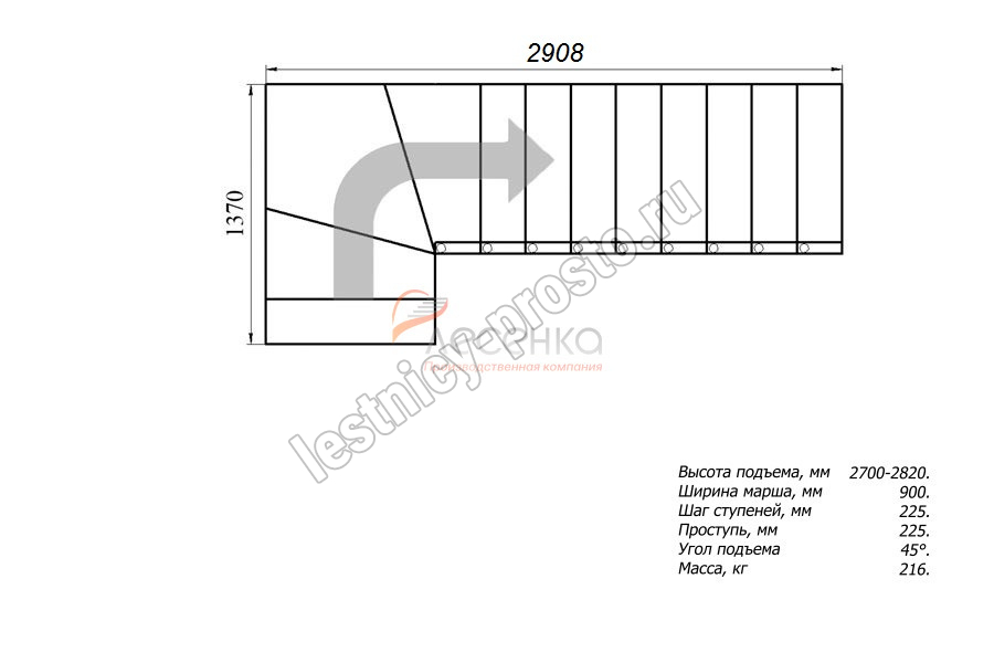 Модульная лестница Фаворит 225 2700-2820, Черный, Бук, Нержавеющая сталь