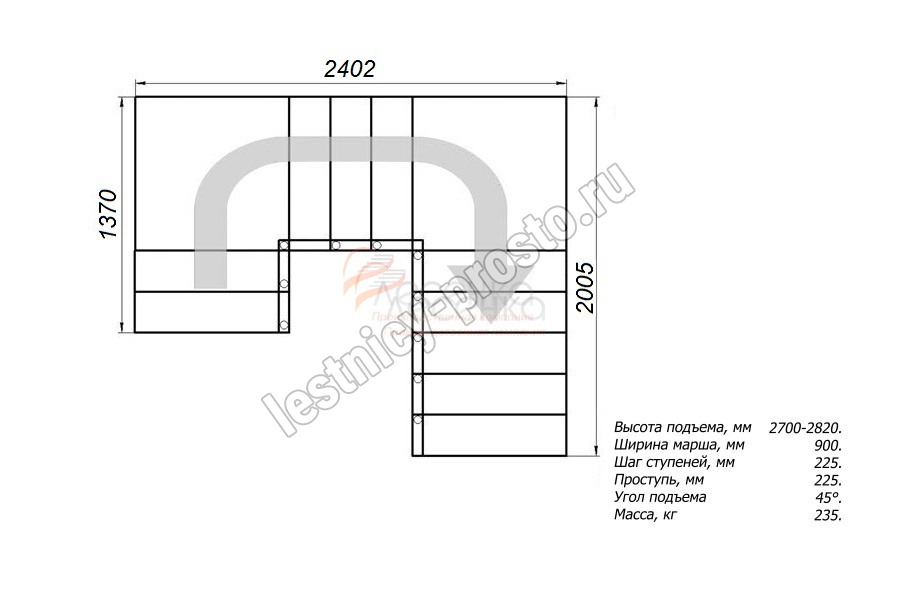 Модульная лестница Комфорт 225 2700-2820, Черный, Лиственница, Крашеная