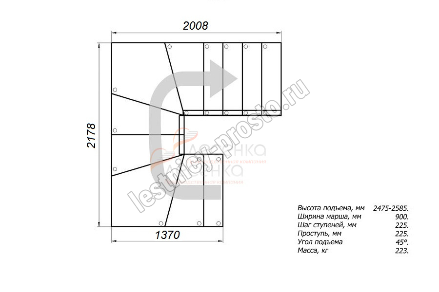 Модульная лестница Спринт 225 2475-2585, Серый, Сосна, Крашеная, Без Ступений