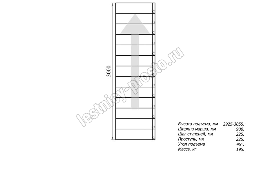 Модульная лестница Стандарт 2925-3055, Белый, Бук, Нержавеющая сталь