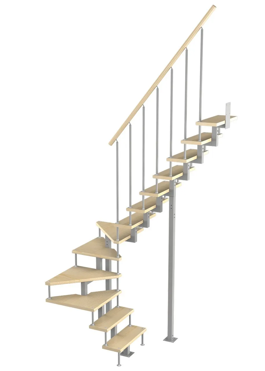 Модульная малогабаритная лестница Эксклюзив 2925-3150, Серый, Лиственница, Нержавеющая сталь