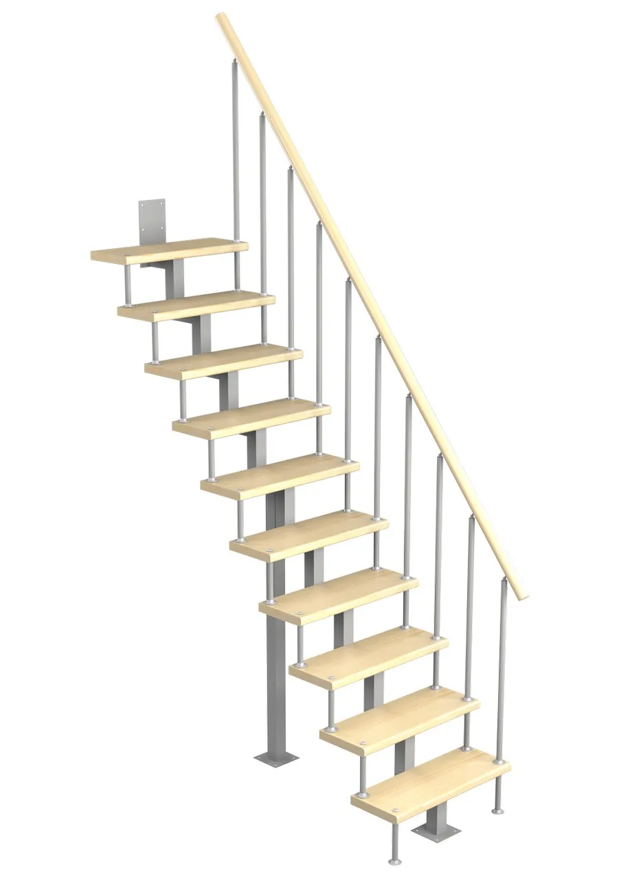 Модульная малогабаритная лестница Линия 2250-2475, Серый, Бук, Нержавеющая сталь