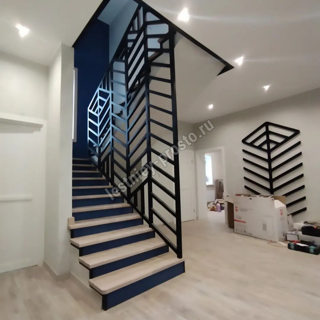 Облицовка лестницы из бетона с дизайнерским ограждением LP-1-13