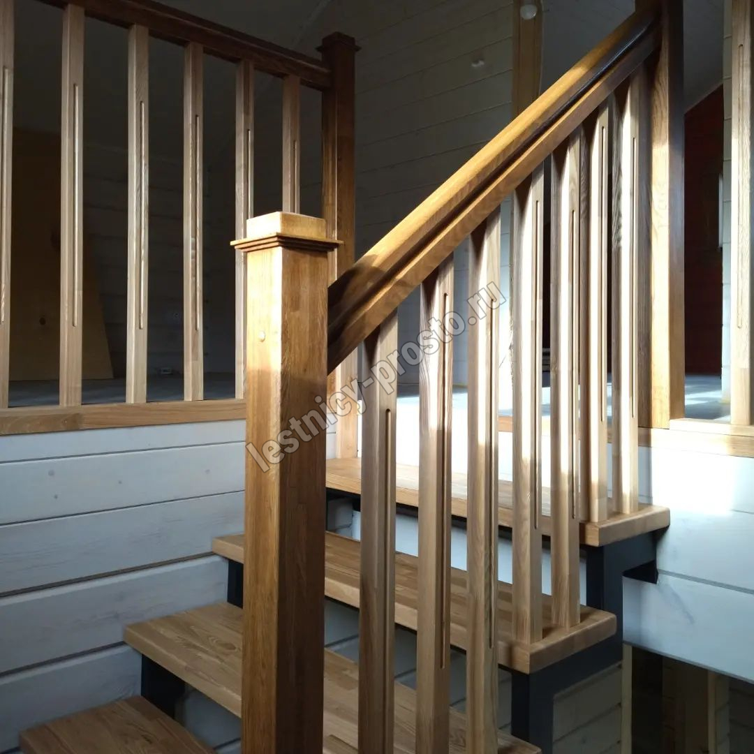 Ступени и ограждения выполнены из срощенного дуба категории АВ.